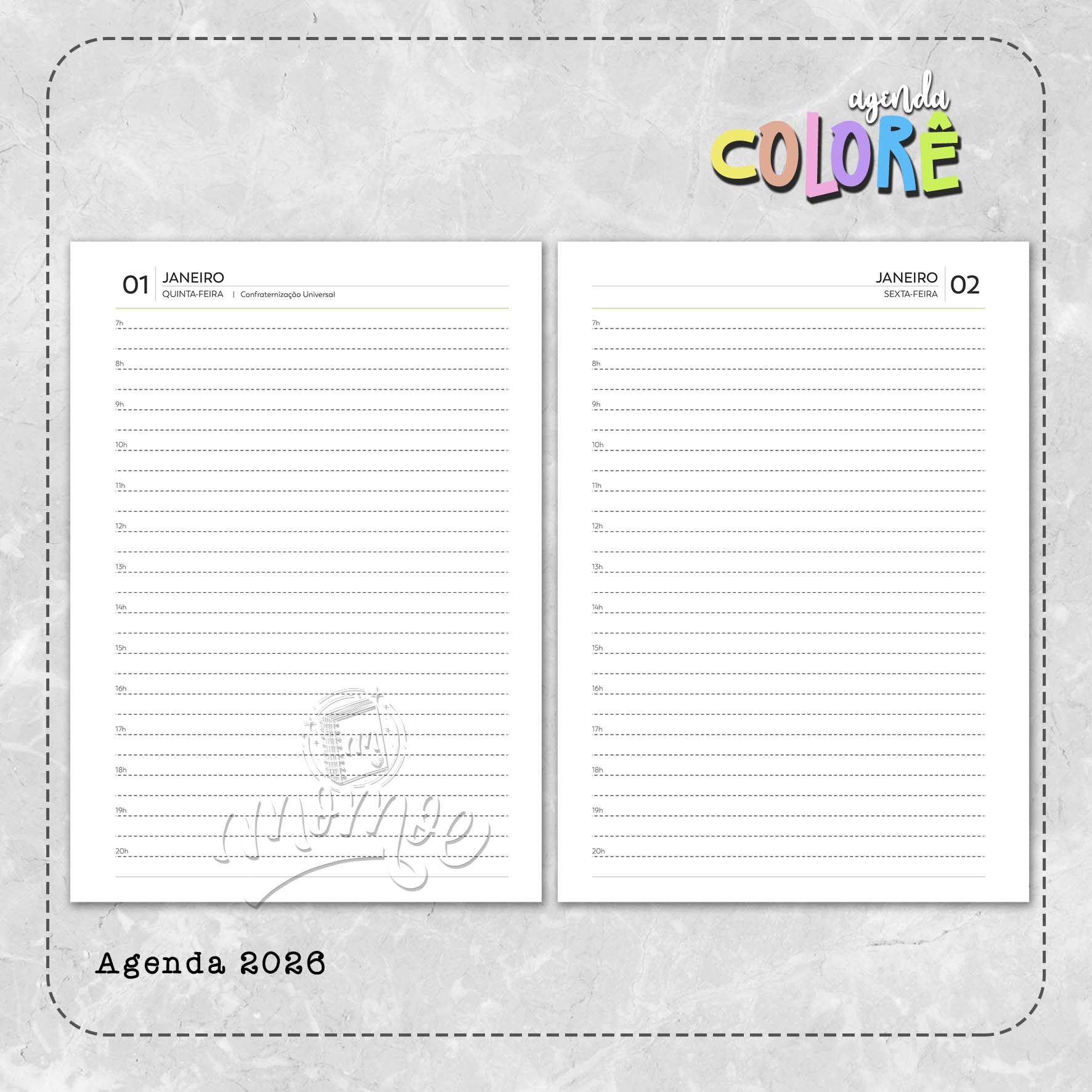 * 1 dia por página (horário das 7:00 às 20:00h) inclusive sábado e domingo