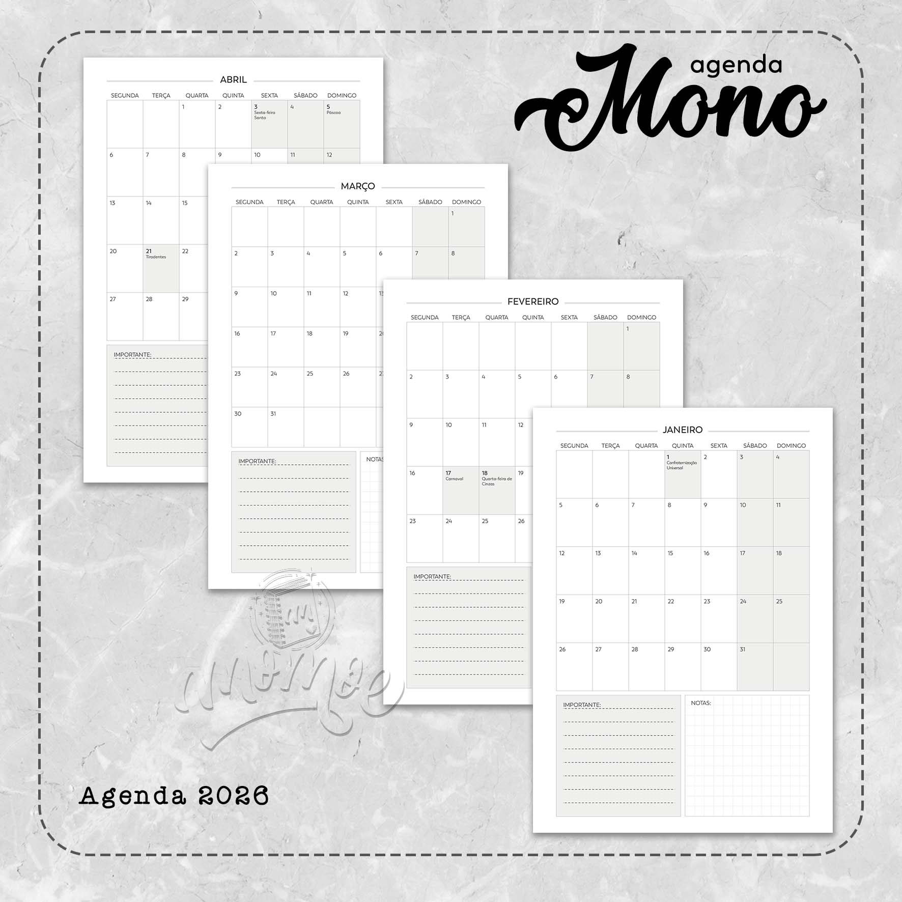 * 1 dia por página (horário das 7:00 às 20:00h) inclusive sábado e domingo