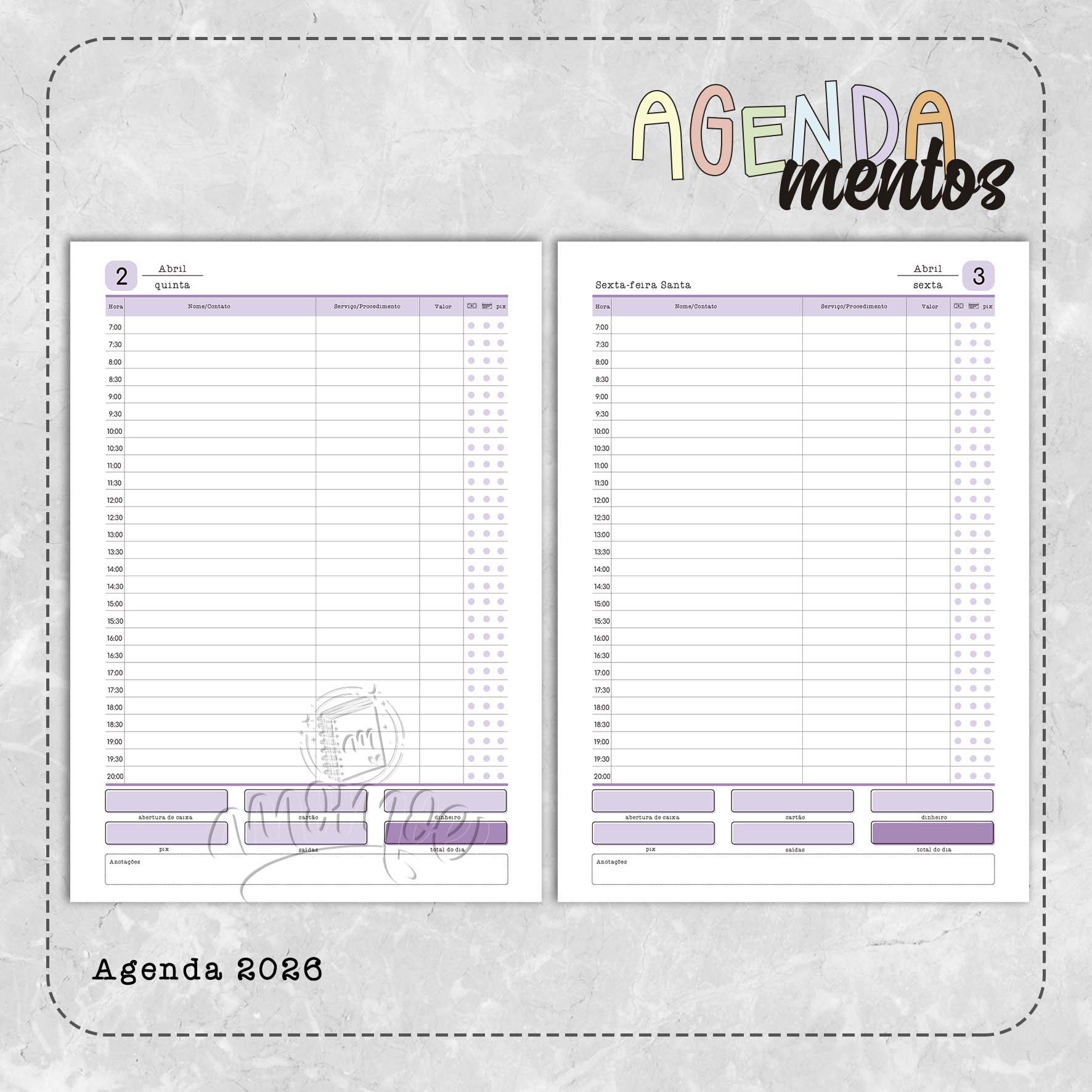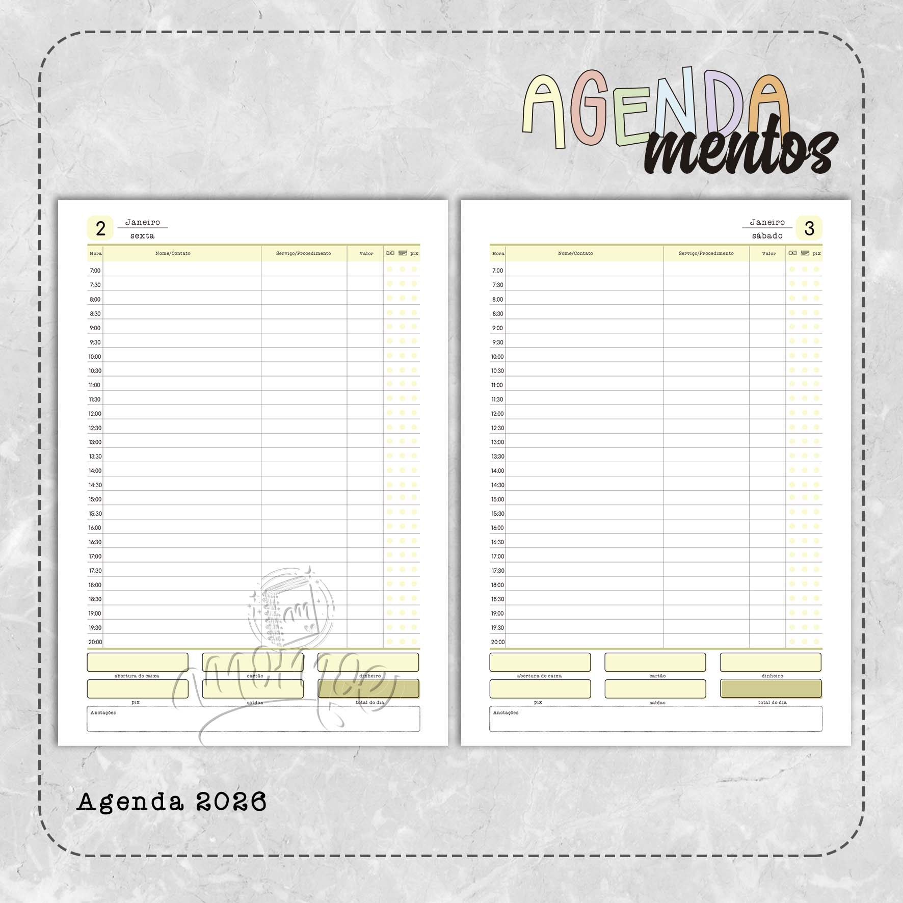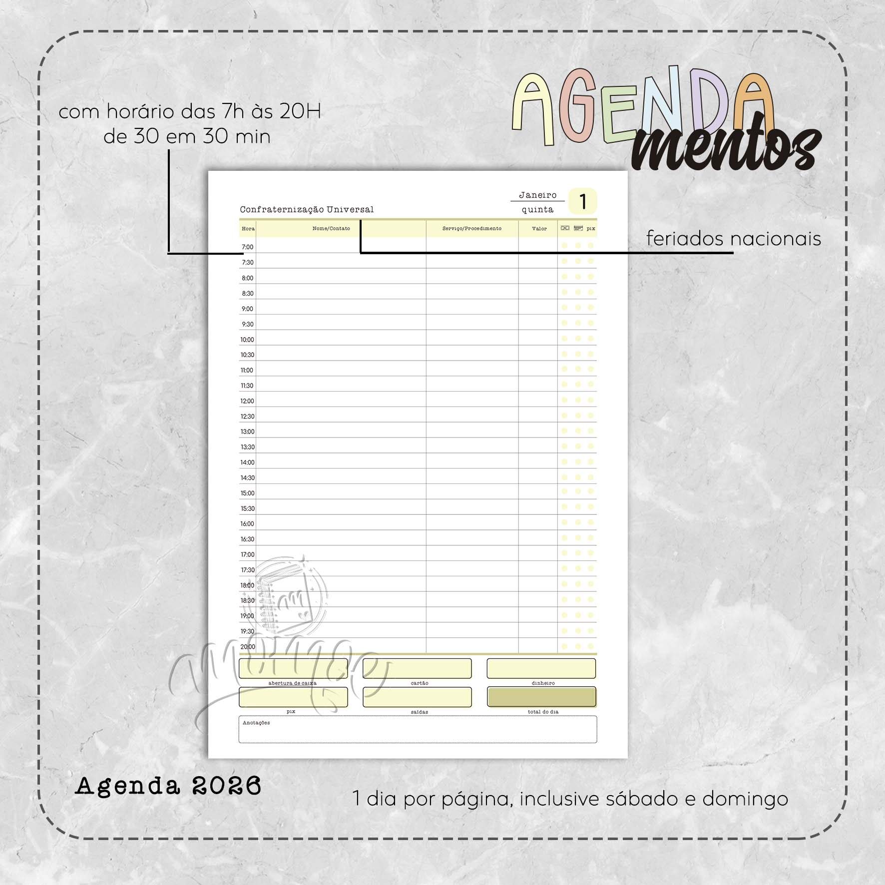 * 1 dia por página (horário das 7:00 às 20:00 hs) inclusive sábado e domingo