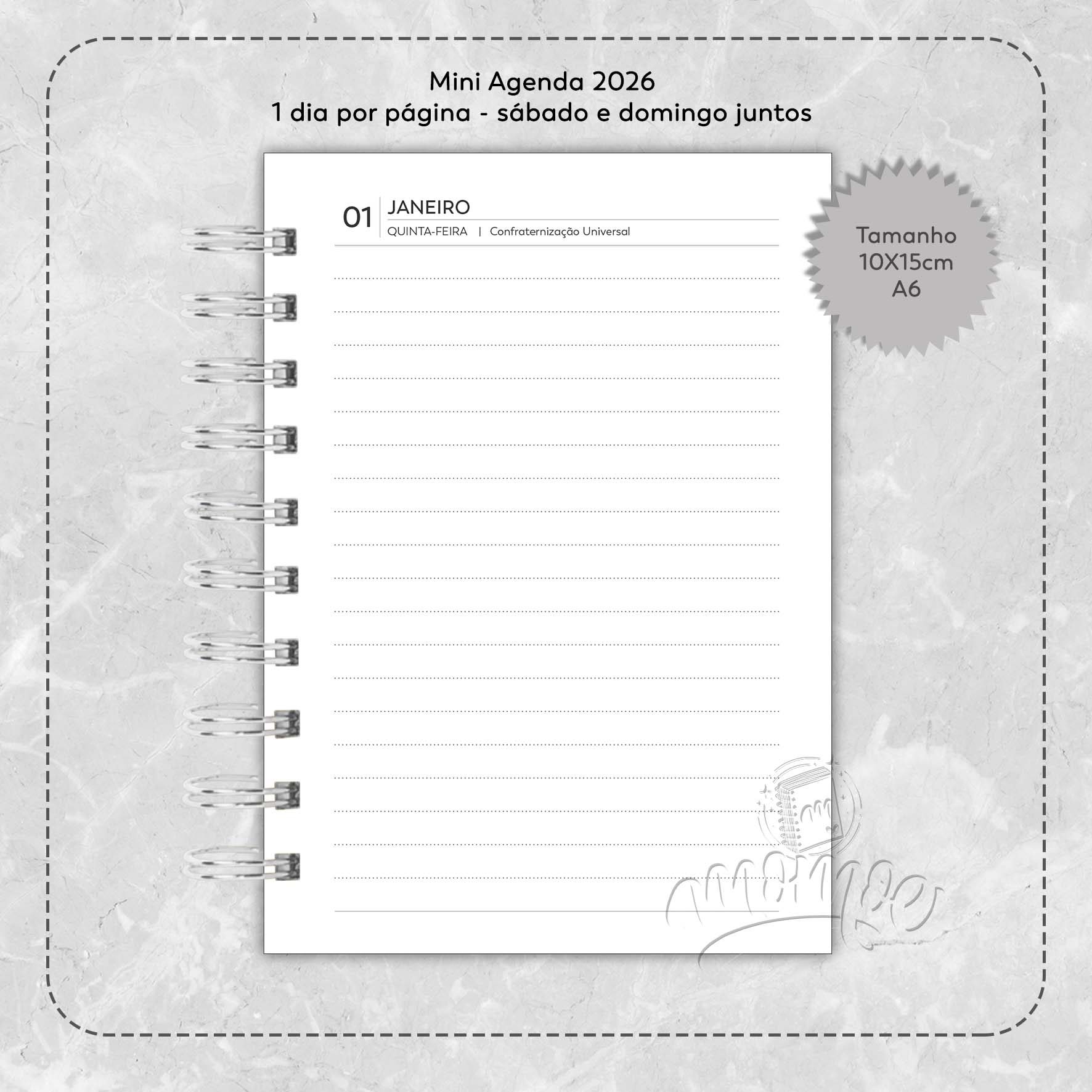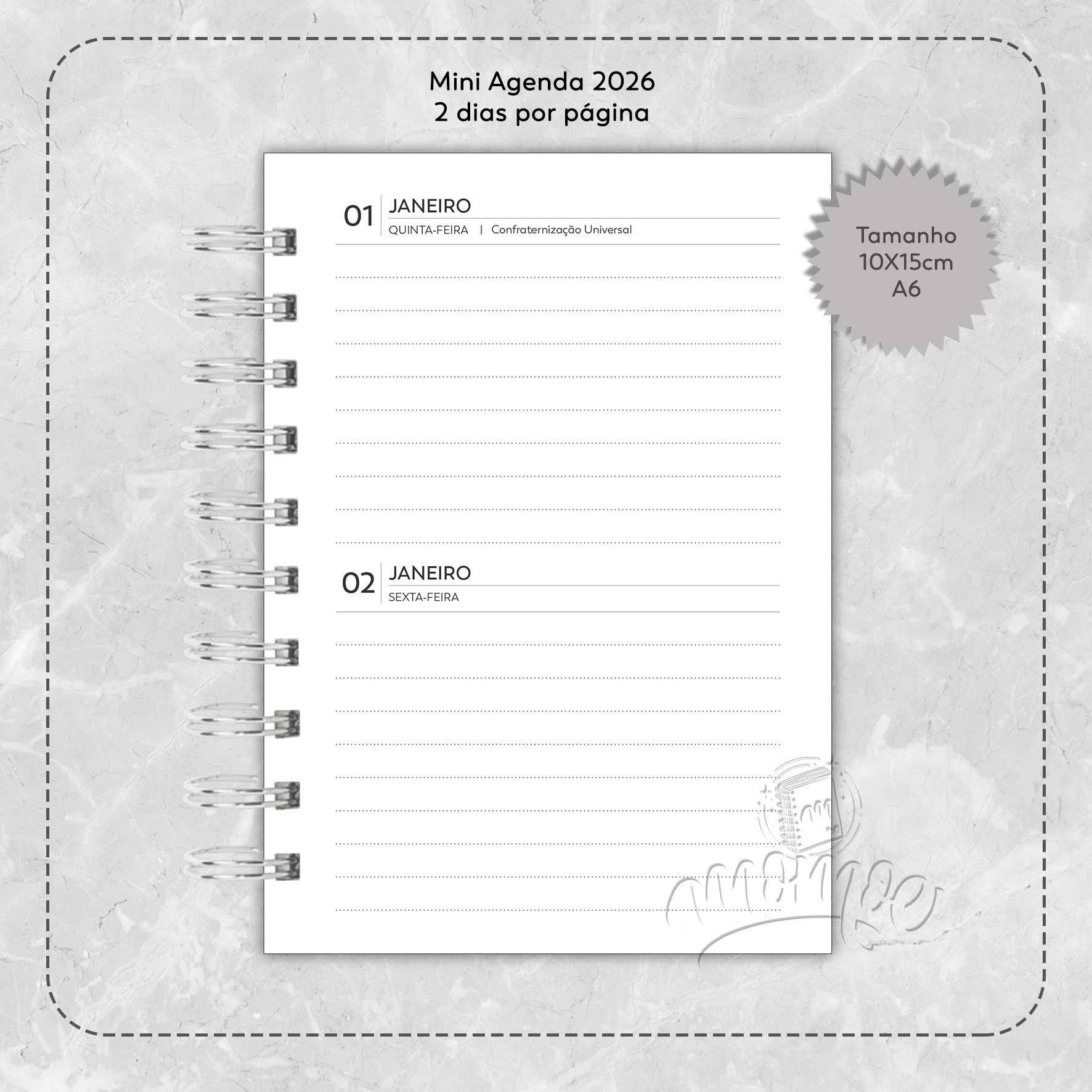 Mini Agenda 2026 – A6 Cinza