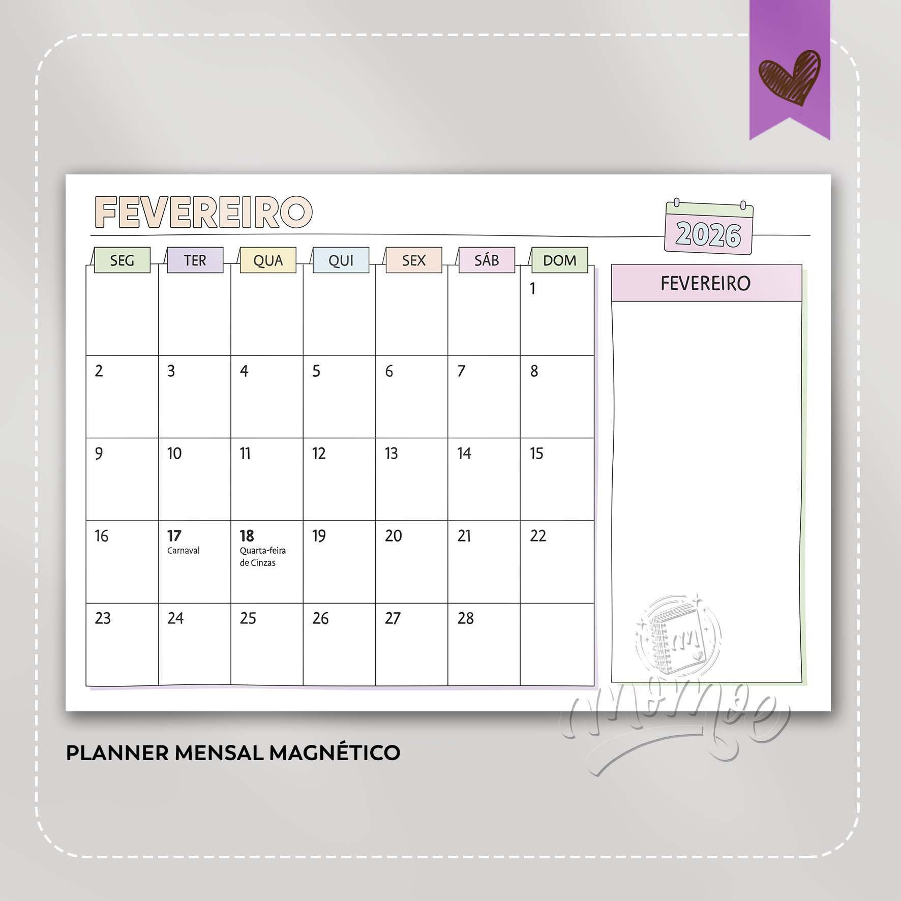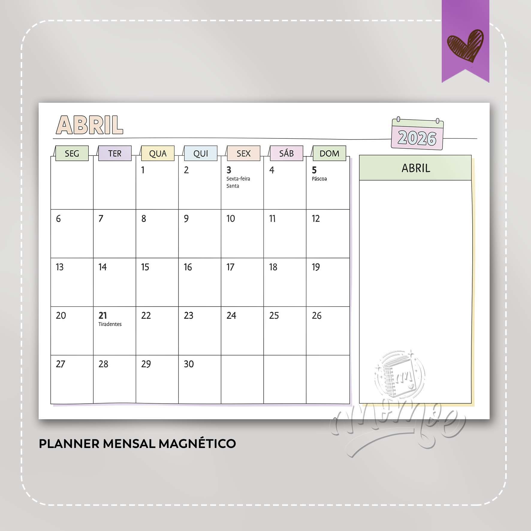 Planner Blocado Mensal Magnético Fun – Calendário de geladeira 2026